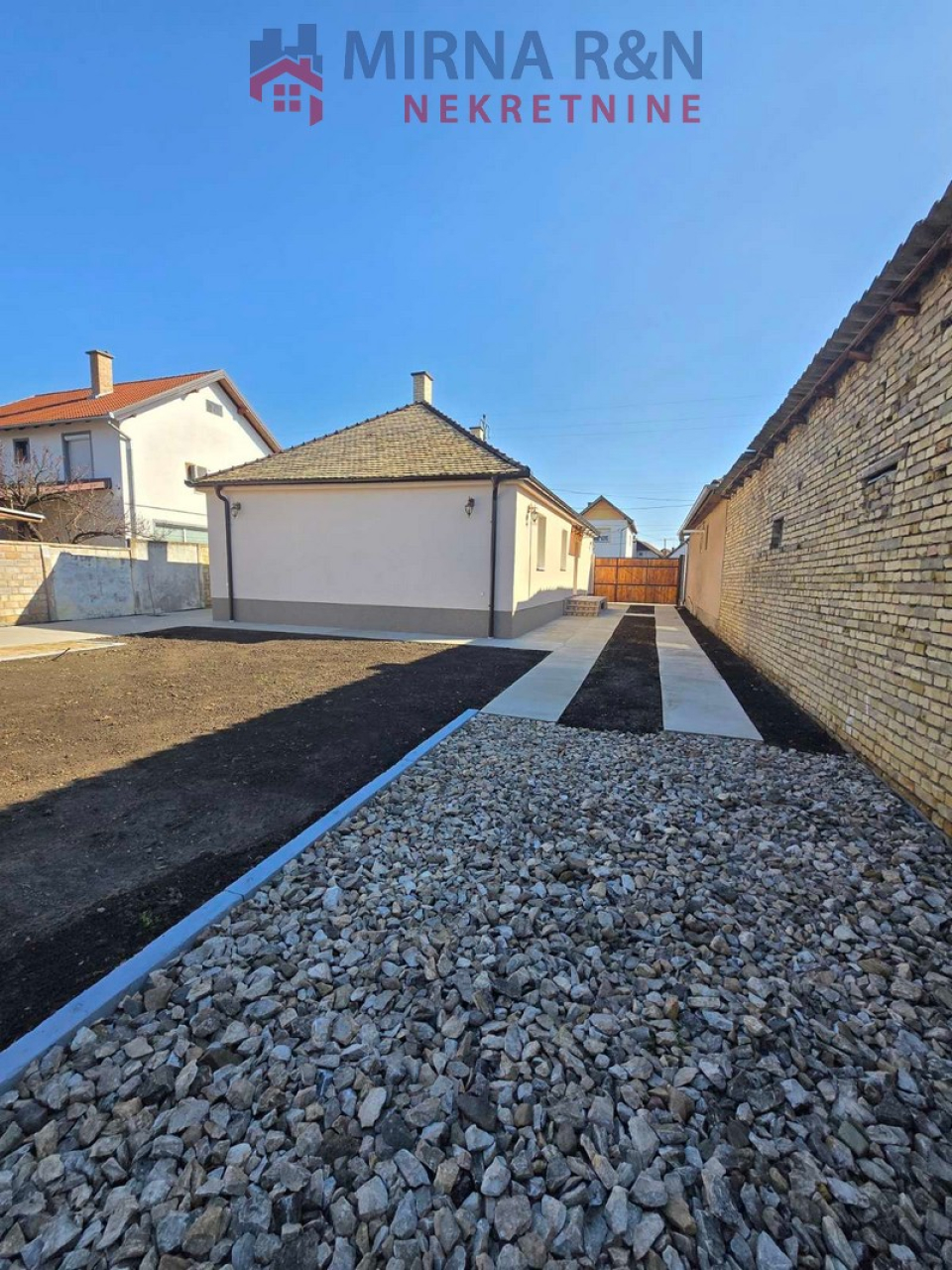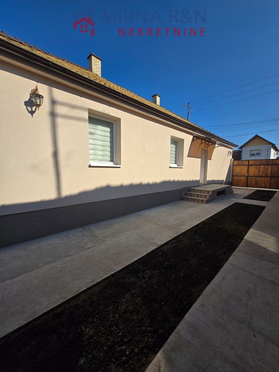 -Kuća je podeljena je u dve stambene jedinice, svaka stambena jedinica je površine 54 m2, površina placa je 729 m2.